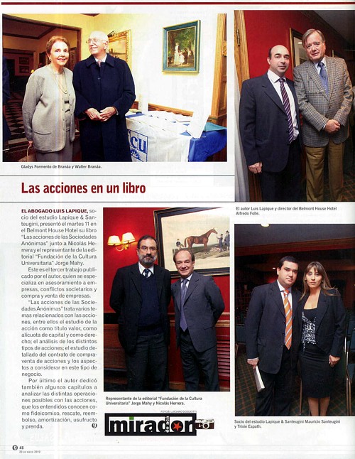 En la revista Galería del 20 de mayo de 2010 (que se publica junto al semanario Búsqueda), cubrieron la presentación de Las Acciones de las Sociedades Anónimas.